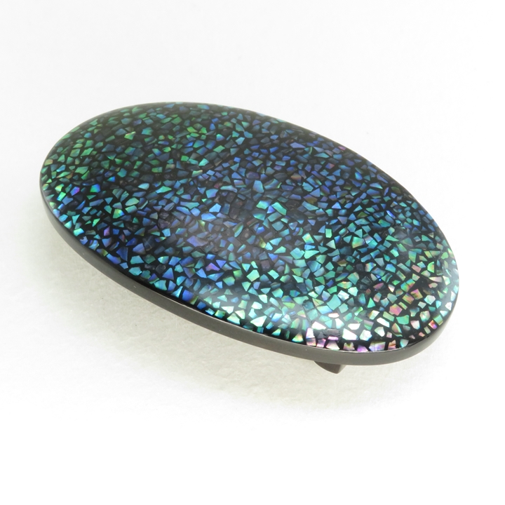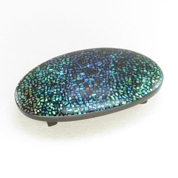 鼈甲割貝螺鈿帯留めのお品になります。薄い厚さにした螺鈿(貝)を割り、竹を尖らした先端で、色の綺麗な貝のみ選び、一つ一つ漆の上に置いていき、塗り重ね、硬化後 専用炭で研ぎあげる技法です。身に着け動く事により細かい貝が上品に光り輝きます。現在では制作に時間がかかるなどの理由により品質の良いお品物は見る事が少なくなっております。ご検討いただけますと幸いです。【ワシントン条約により鼈甲材料の枯渇、職人の減少等が続いております。もとよりお安い価格設定となっております】