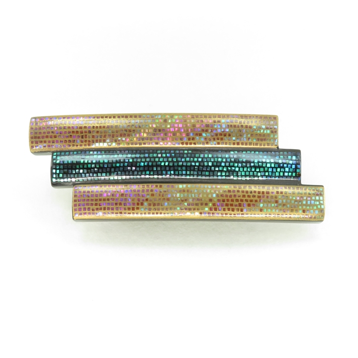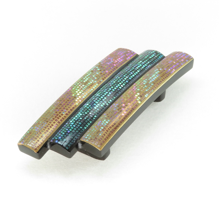 鼈甲帯留め、金貝呂貝(螺鈿蒔絵)のお品になります。黒留袖、お洒落着、訪問着まで幅広く御使用いただけます。[研出蒔絵]のお品は金紛を多量に使用する事、現在では金の高騰、制作に時間がかかる、などの理由により少なくなってきておりますが、やはり金の輝き(重厚さ)が違います。蒔絵は細かい螺鈿(青海波)で有名な一径師(一経)によって仕上げられており、当店お勧めのお品です。※螺鈿のお品は装着時に必ず上下がありますのでご注意下さい(光によって輝きます)【ワシントン条約により鼈甲材料の枯渇、職人の減少等が続いております。もとよりお安い価格設定となっております】筏型は現在希少なお品となっております。